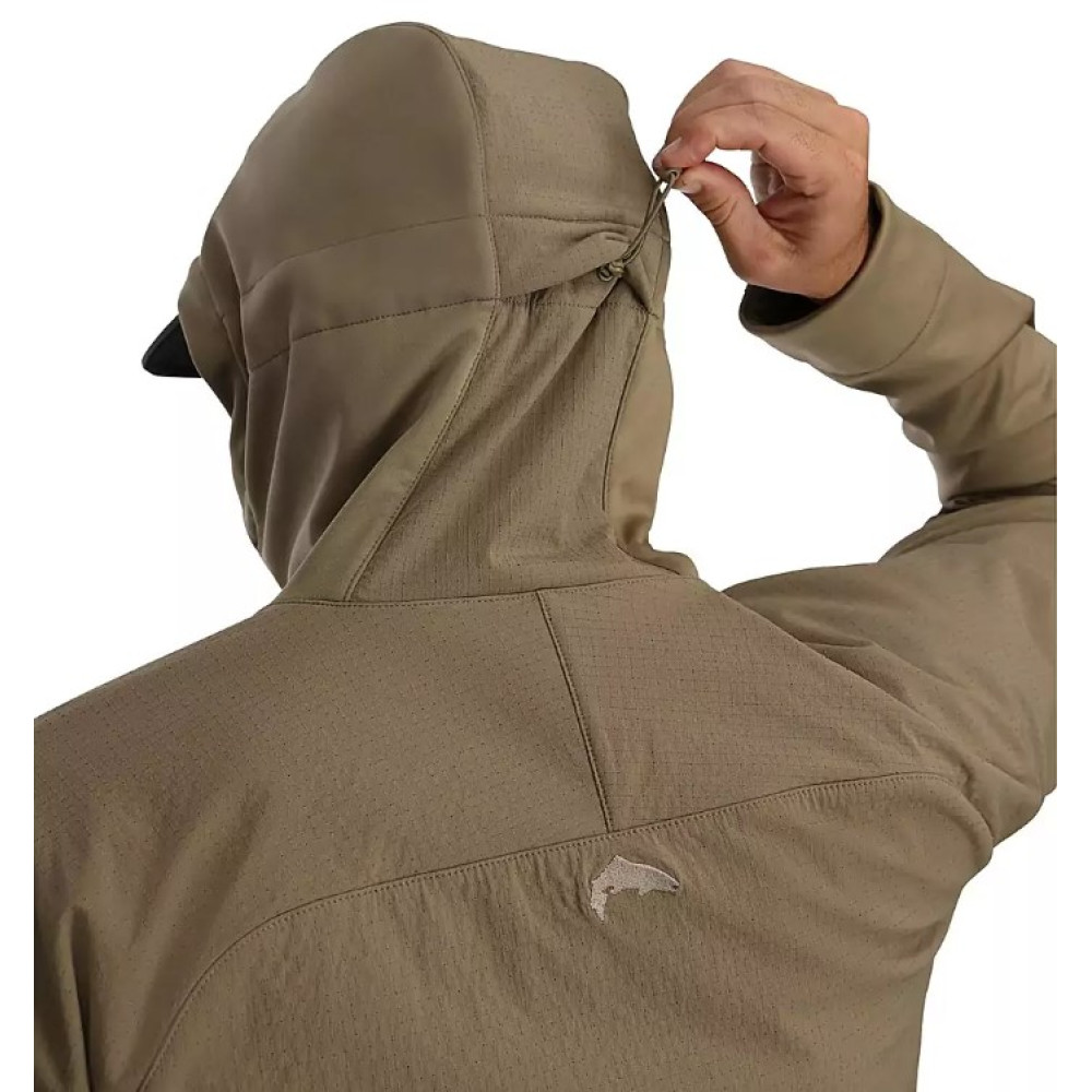Куртка Simms Saginaw Hoody — це технологічне рішення для рибалок, яким потрібен надійний захист без зайвої ваги та об'єму. Завдяки використанню матеріалу Softshell, куртка поєднує в собі властивості зовнішнього захисного шару та легкого утеплювача, що робить її максимально універсальною.